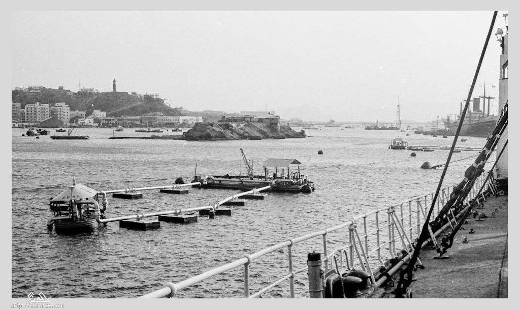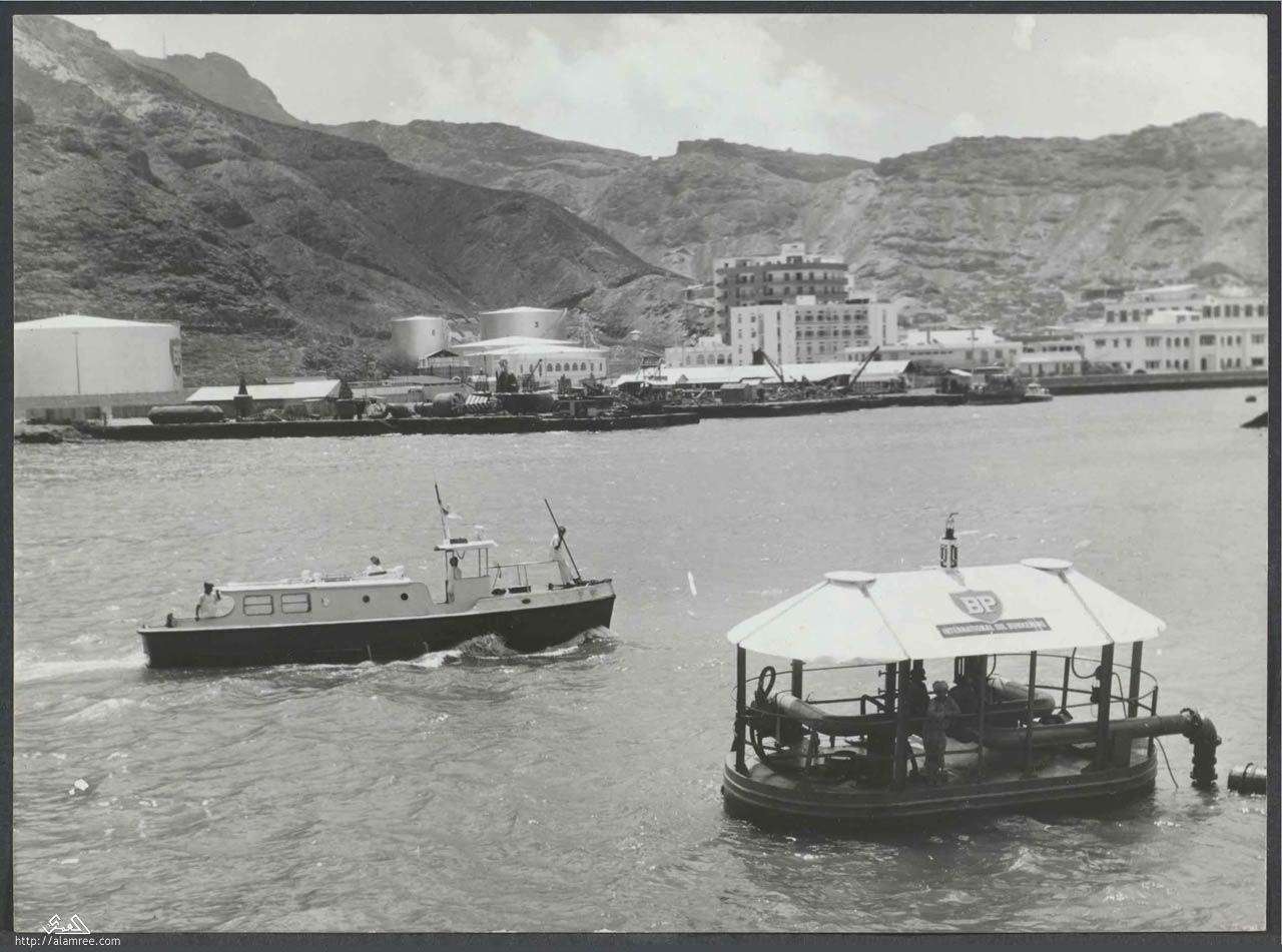 مرسى سفن ومنصه لتزويد البواخر بالوقود وفي الخلفيه مدينة التواهي في