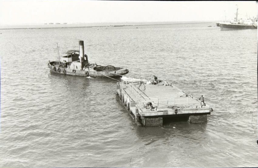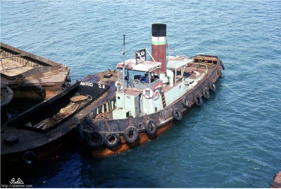 تاج "رفاص" وهو يقوم بسحب صنادل البضائع بعد انزال البضائع من