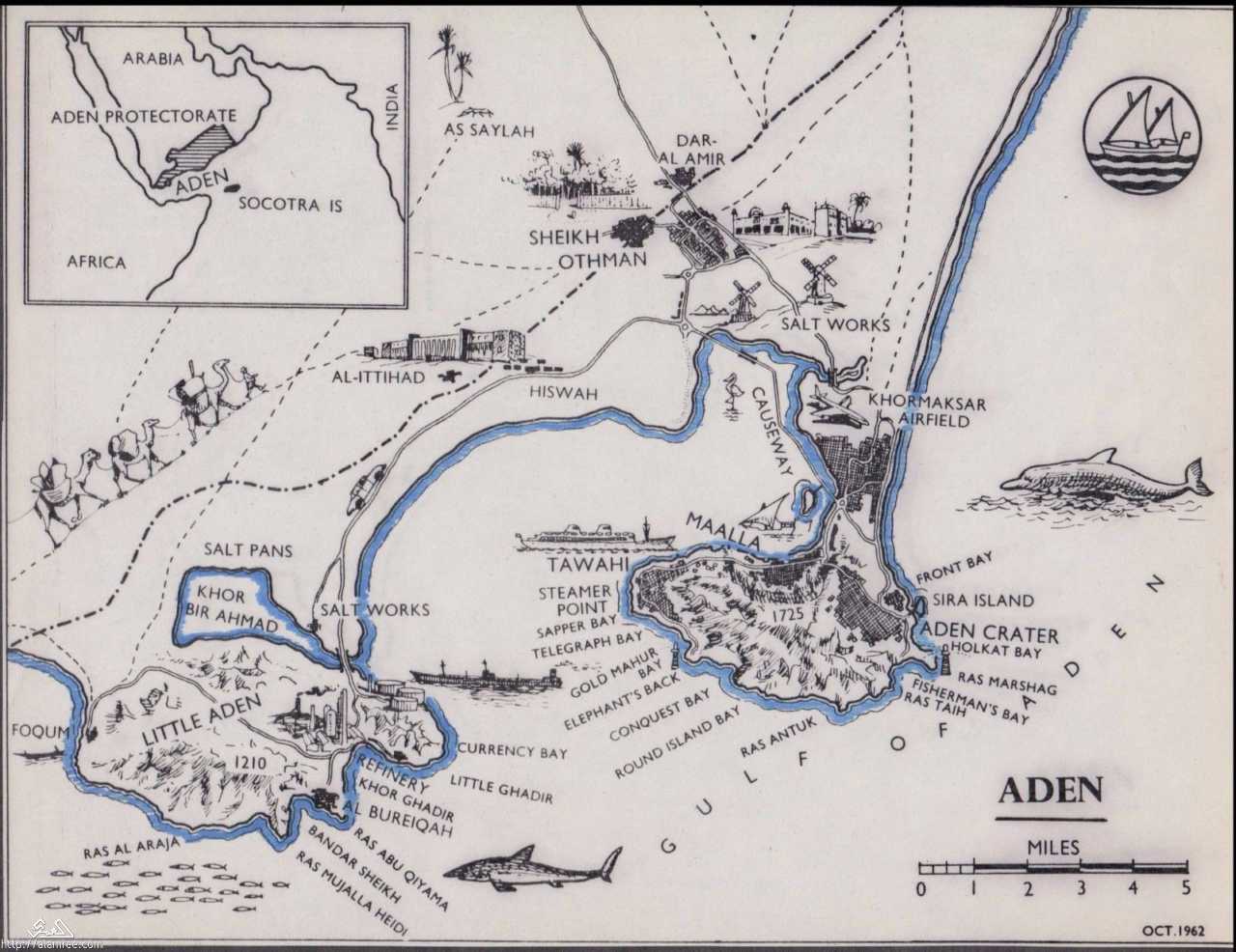 خارطه لعدن ومينائها مع ذكر اهم معالمها |
