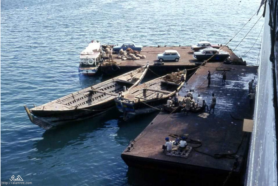 التواهي الميناء في ستينيات القرن الماضي وفي مقدمه الصوره احد اللنشات