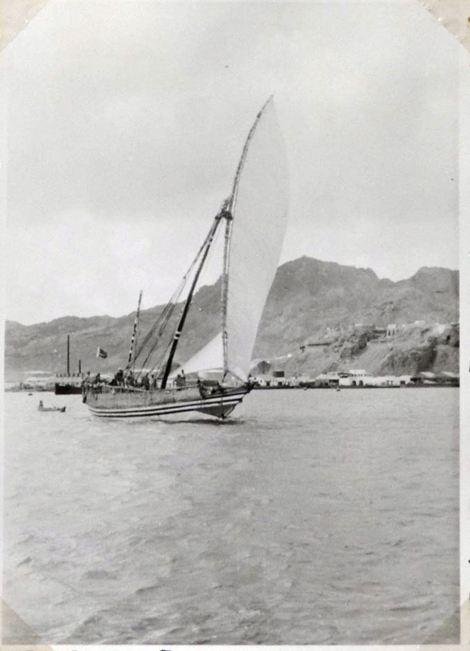 سفينة شراعيه خارجه من ميناء عدن في الستينيات |