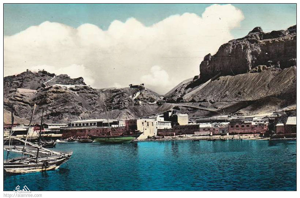 ميناء عدن التواهي في الخمسينيات بالقرب من كاسر الامواج |