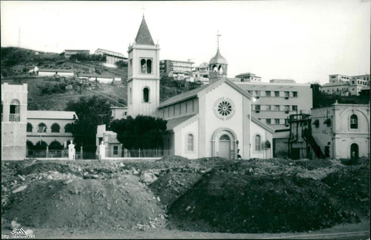 البنجسار التواهي عدن ويلاحظ وسط اللكنيسه الكاثوليكيه "الكنيسه الانجليكانيه الرومانيه" بنية عام 1891م وبرج الناقوس خلفها بني لاحقا