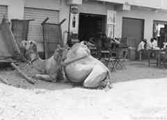 جمل يقوم بطحن مادة البوميس لاستخدامه في