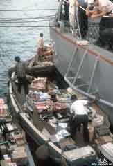 تجار قوارب البامبو في الستينات بجانب احدى السفن التي لم يستطع بحارتها النزول