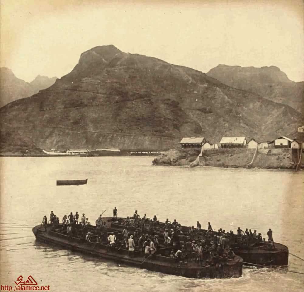 ميناء عدن عام 1942 وفي يمين الصوره جزء من جزيرة الحجرالصحي |