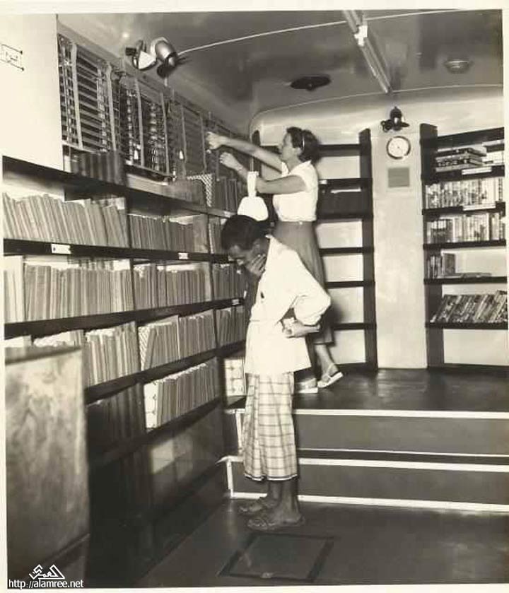 داخل المكتبه المتنقله اختر الكتاب ليبقى معك فترة اسبوع مقابل رسوم