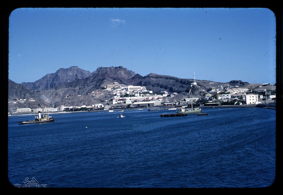 ميناء عدن وفي الخلفيه جبال التواهي في الستينات من القرن الماضي