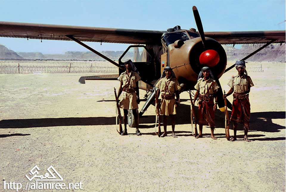 قوات حراسه من جيش الباديه الحضرمي على طائرة حربيه بريطانية