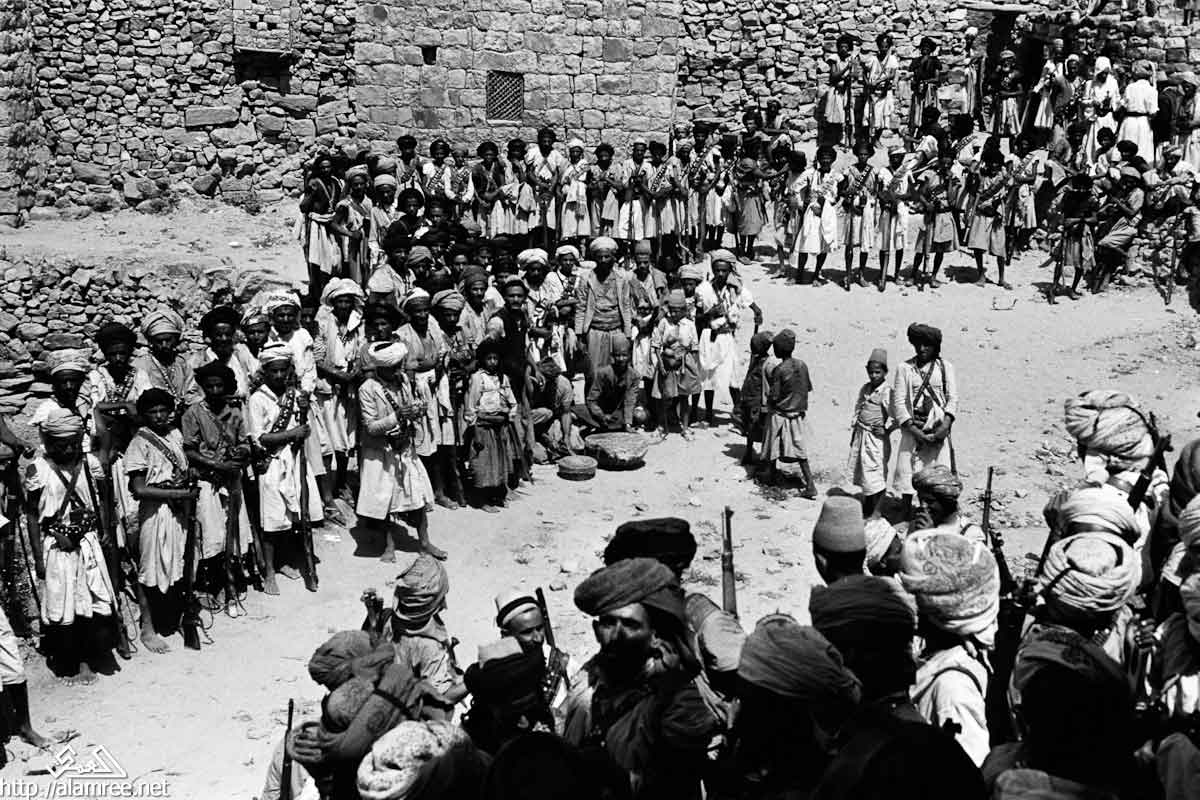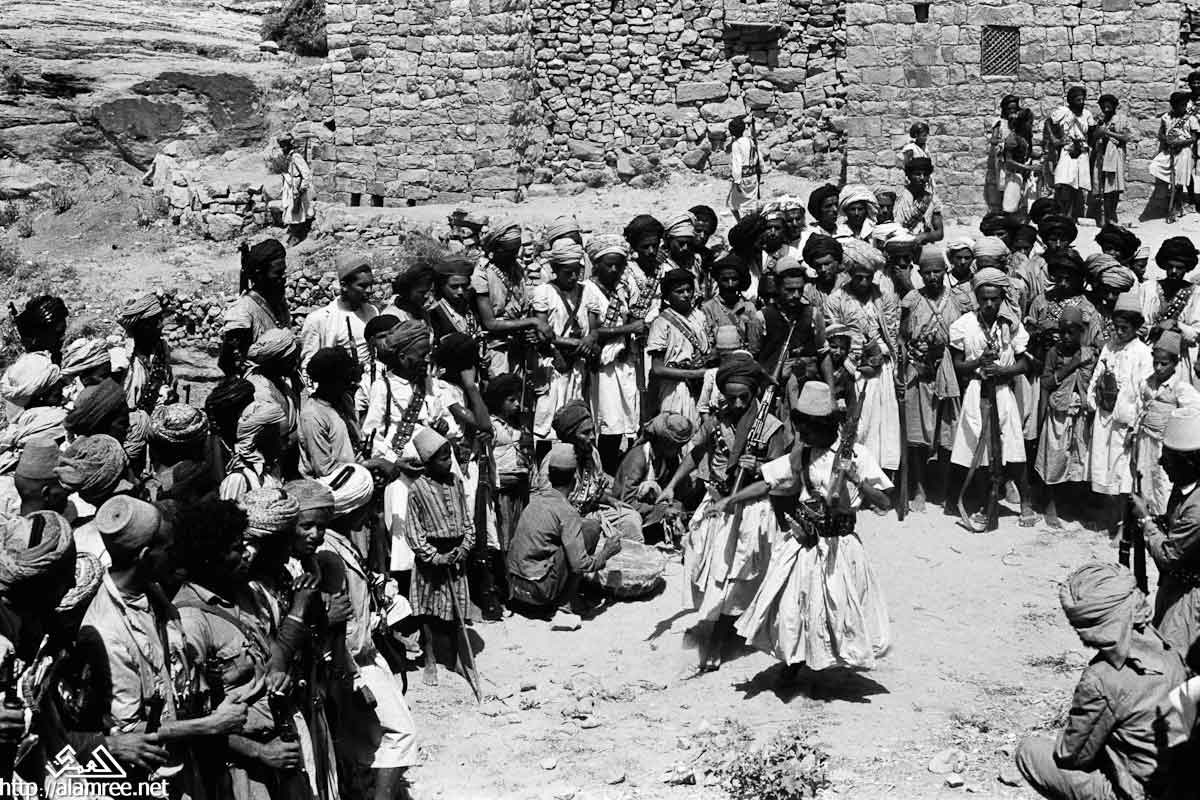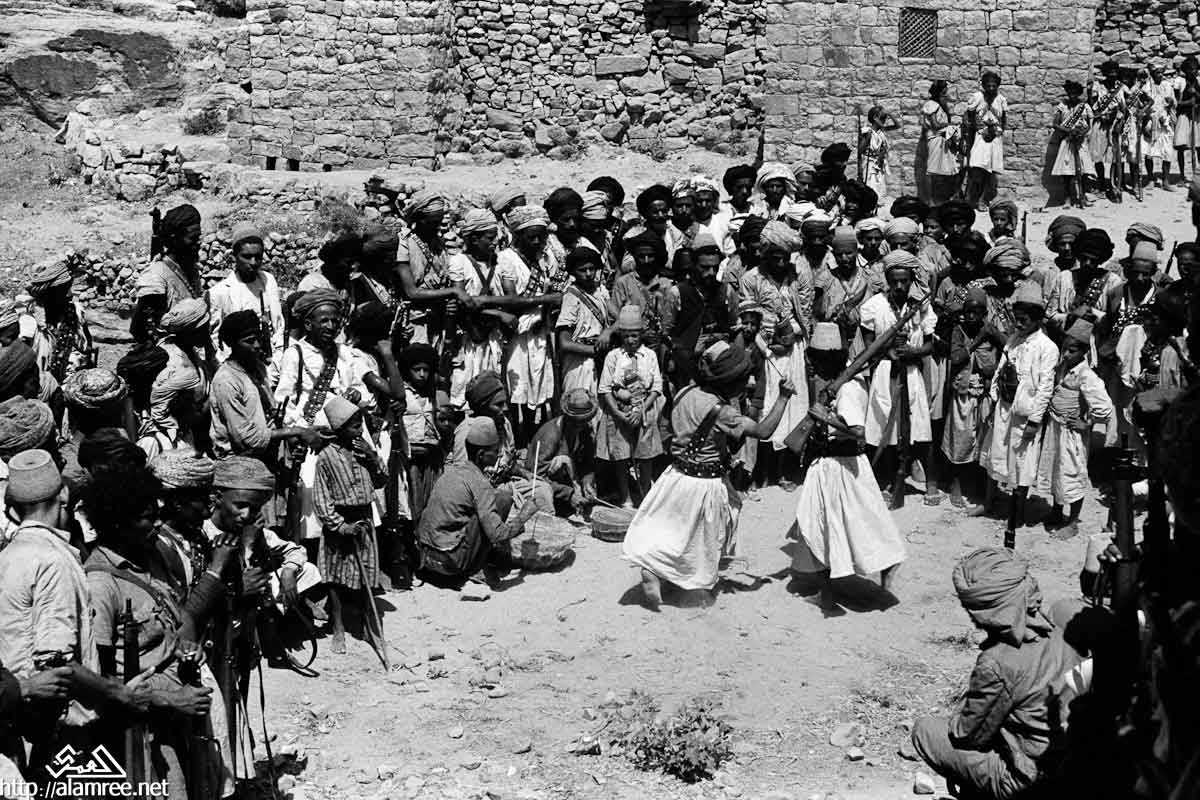 مجموعة كبيرة من الرجال والفتيان يرقصون