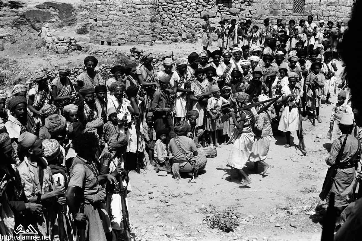 صورة لشاب يحمل بندقية كبيرة ويرتدي قبعة مميزة، الماندولير حول صدره وخنجرا في حزامه