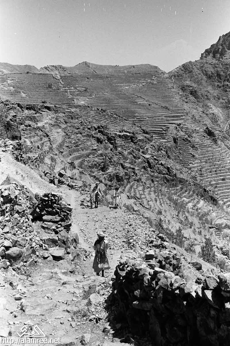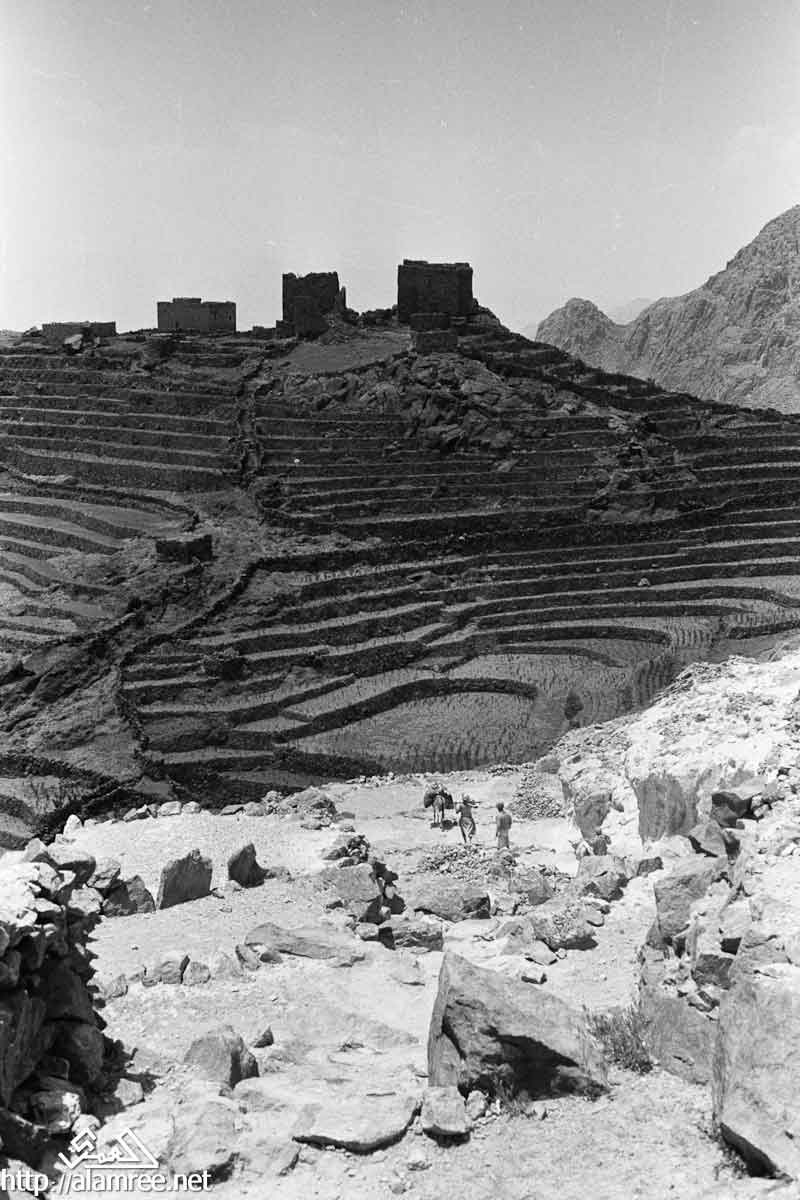 اجزاء من قرية مبنية على سفوح سلسلة جبال صخرية