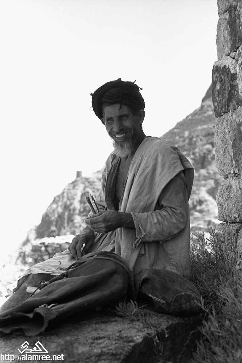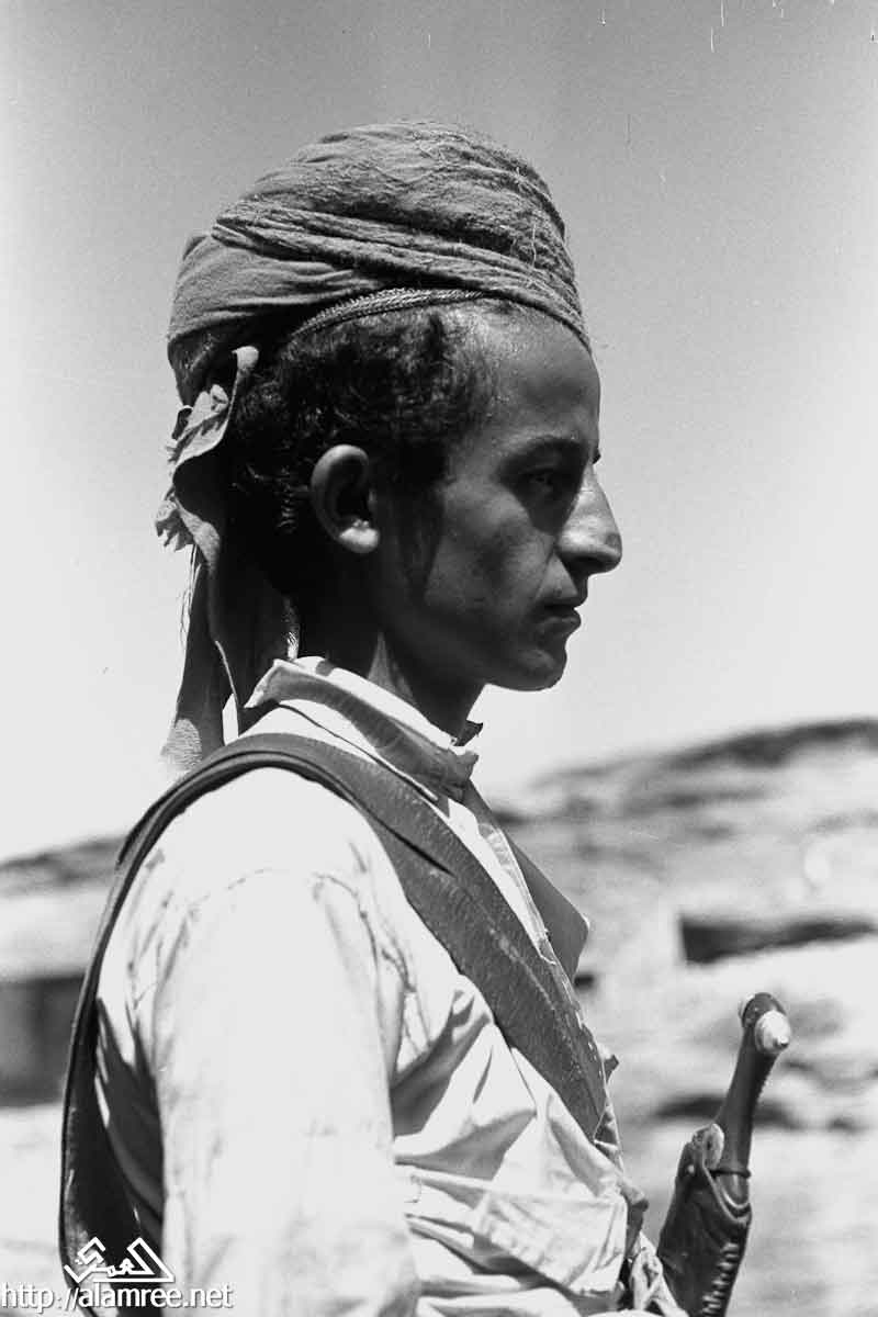 صورة لشاب يرتدي خنجر كبير مغمد في حزامه