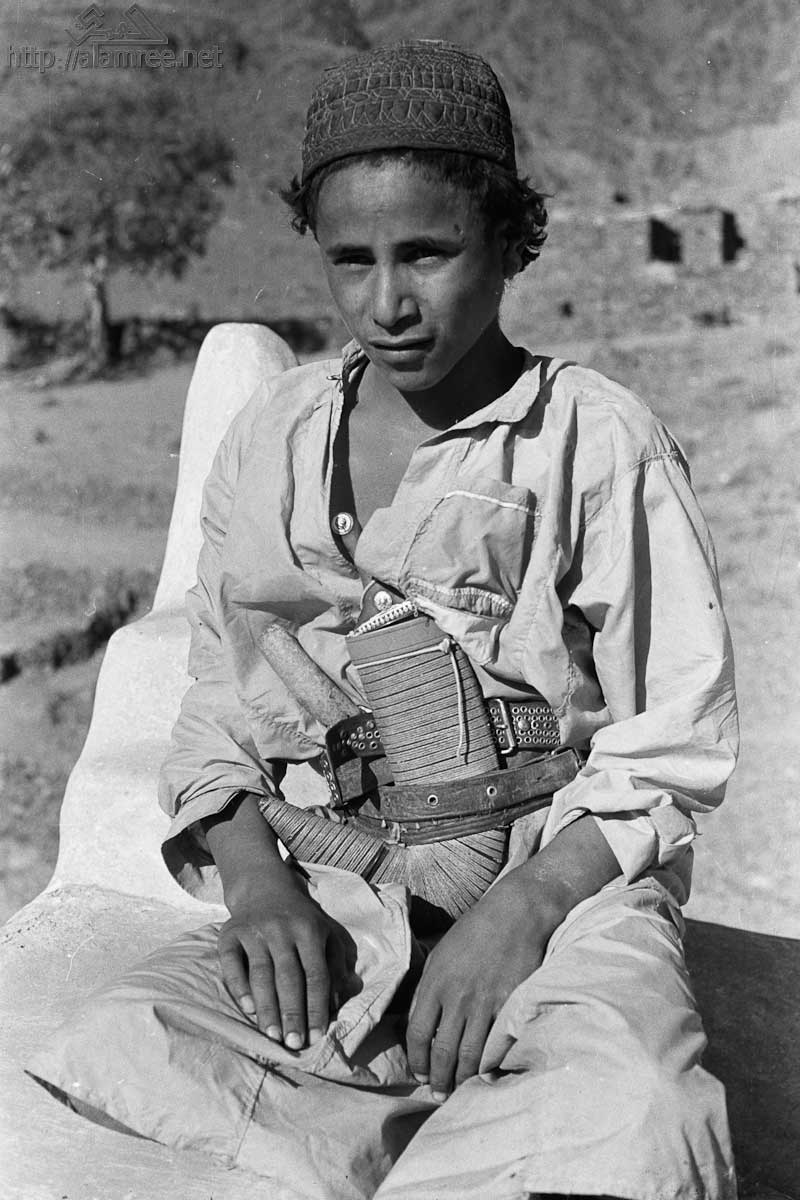 صورة لصبي صغير بخنجر مغمد في حزامه