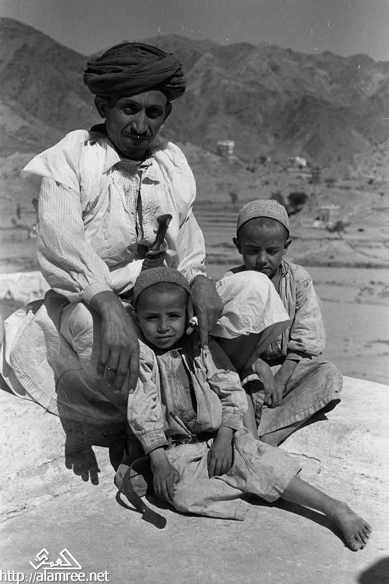 حصورة لرجل يجلس على الأرض مع اثنين من الصبية ـ حيدان 1966