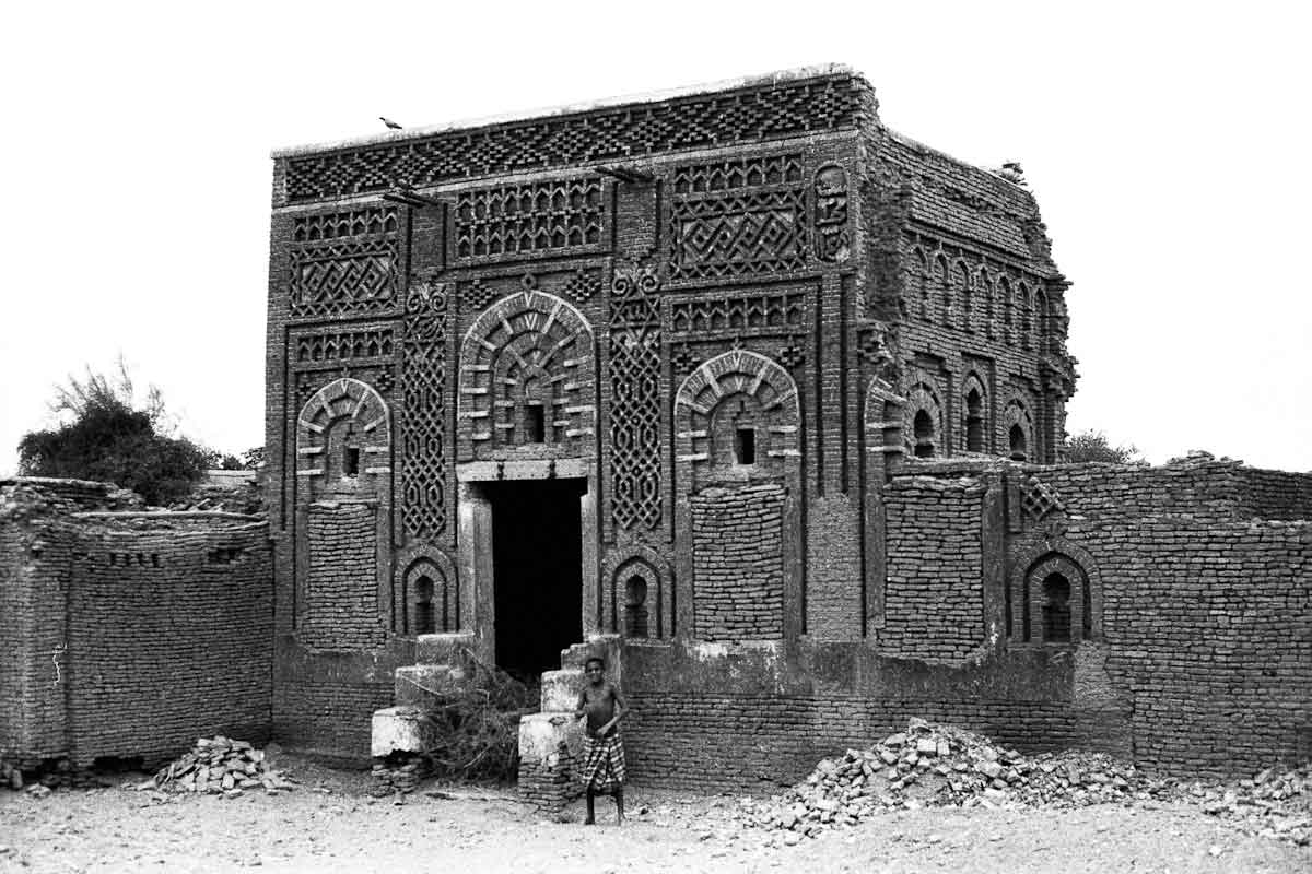 الحديده زبيد عام 1977م عرض لمبنى من الطوب اللبن عليه زخرفة