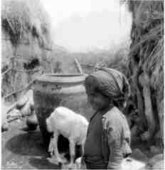 قرية درب مع صف مزدوج من الأواني من تخمر النيلي. |