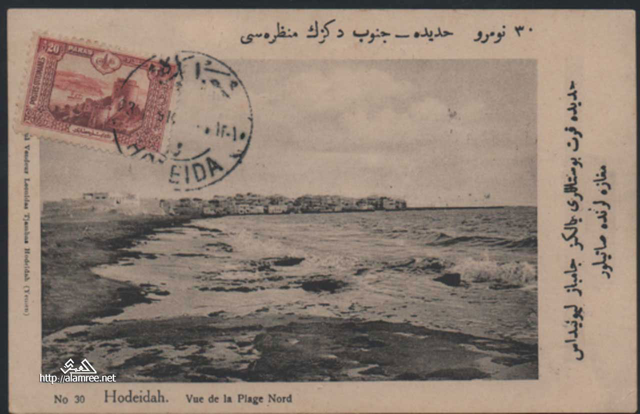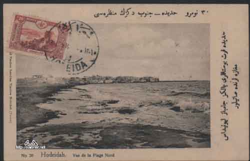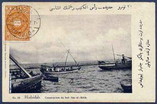 رصيبف ميناء الحديدة في بطاقة بريدية من بداية القرن الماضي |