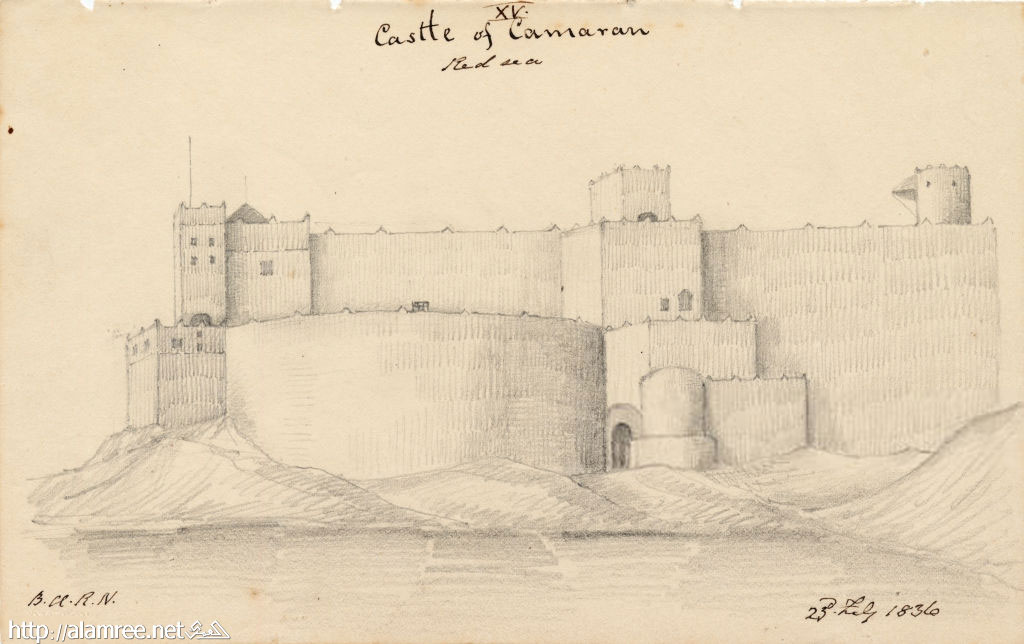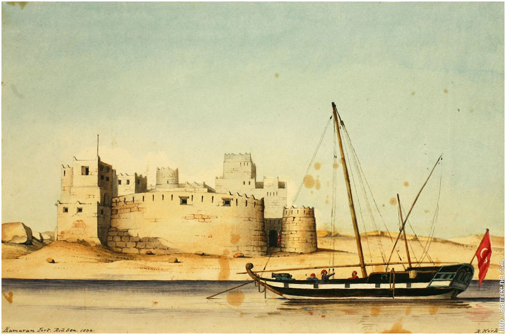 حصن كمران ، البحر الأحمر ، 1836م. (تصوير روبرت كيرك / الجمعية الجغرافية الملكية |