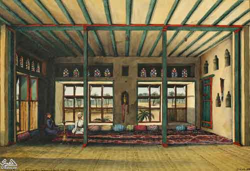 منزل ريفي لشيخ طيب ، بالقرب من المخاء ، اليمن. 1832م تصوير روبرت كيرك / الجمعية الجغرافية الملكية |