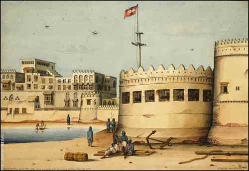 قلعة كمران ، البحر الأحمر ، اليمن.عام 1834م (تصوير روبرت كيرك / الجمعية الجغرافية الملكية |
