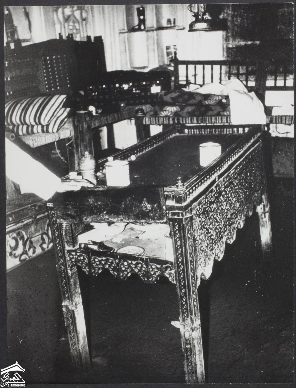[خزانة من الخشب المخرم تقع داخل غرفة بها