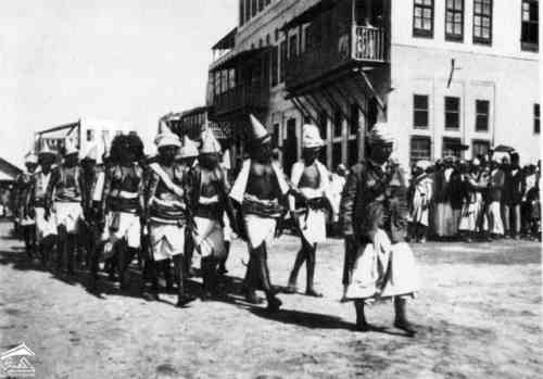 العثمانيين مع شيوخ قبيلة الزرانيق في حفل افتتاح مشروع السكة الحديد اواخر