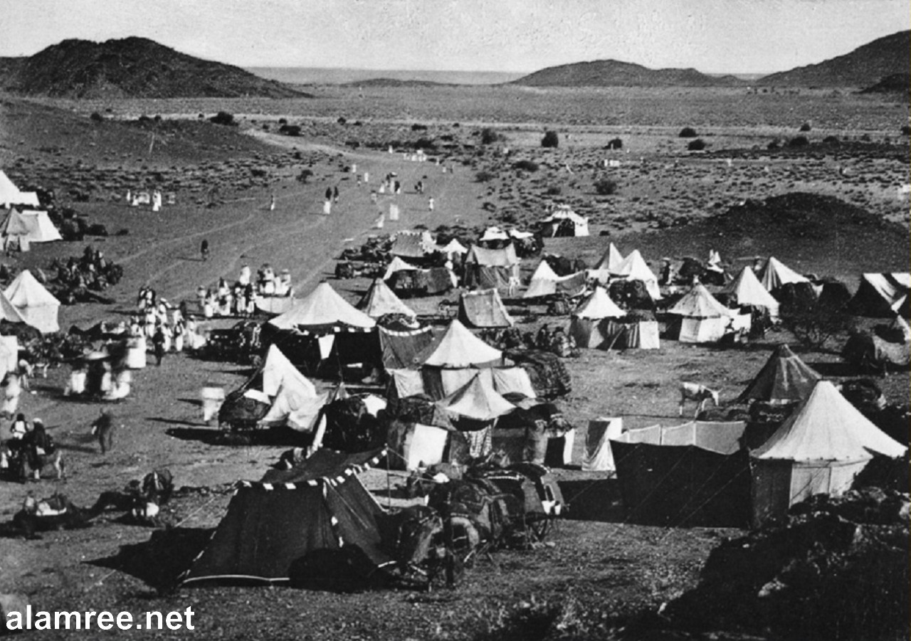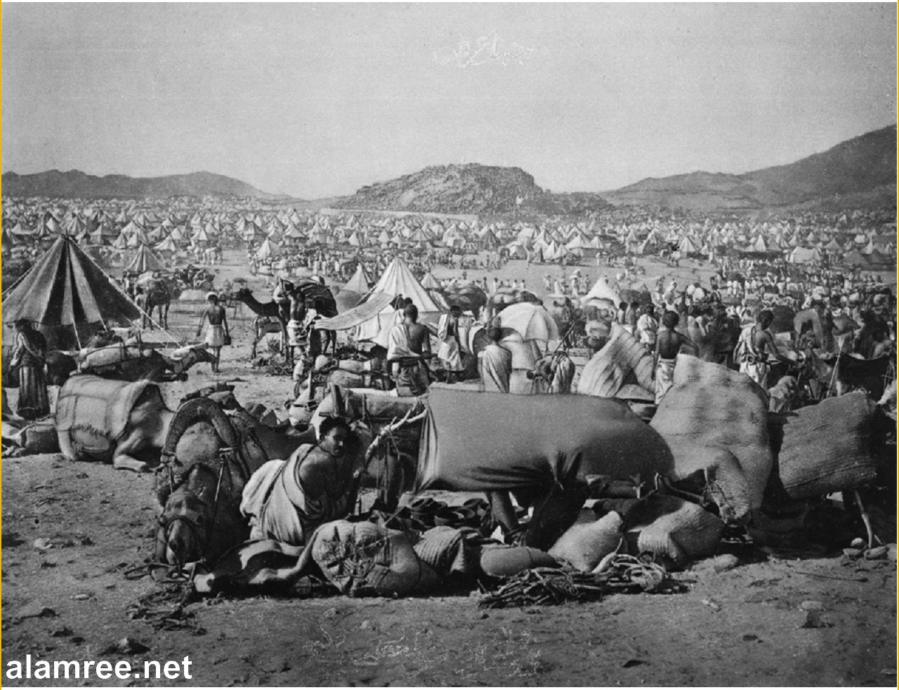 صل الله عليه وعلى اله وسلم ومخيم لمن سافر إلى هناك من حجيج مكة.