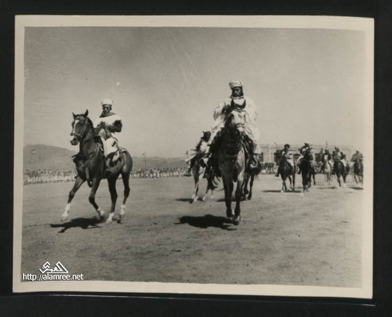 الامام احمد في سباق اثناء حضوره العرض العسكري في تعز عام 1952 |