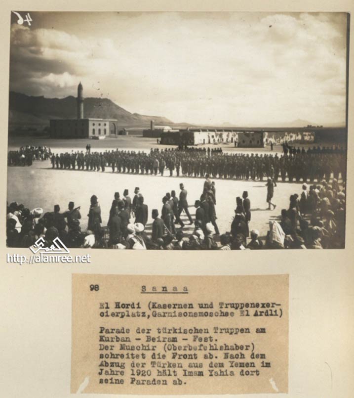 ![]() صنعاء العرضي عرض عسكري للقوات التركيه في اليمن عام 1920م |