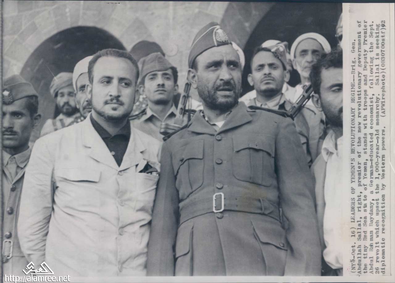 الرئيس عبدالله السلال رئيس الجمهوريه الفتيه ونائبه عبدالرحمن البيضاني صنعاء 16 اكتوبر