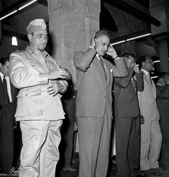 صوره للرئيس عبدالناصر والرئيس السلال وهم يؤدون الصلاه في المسجد