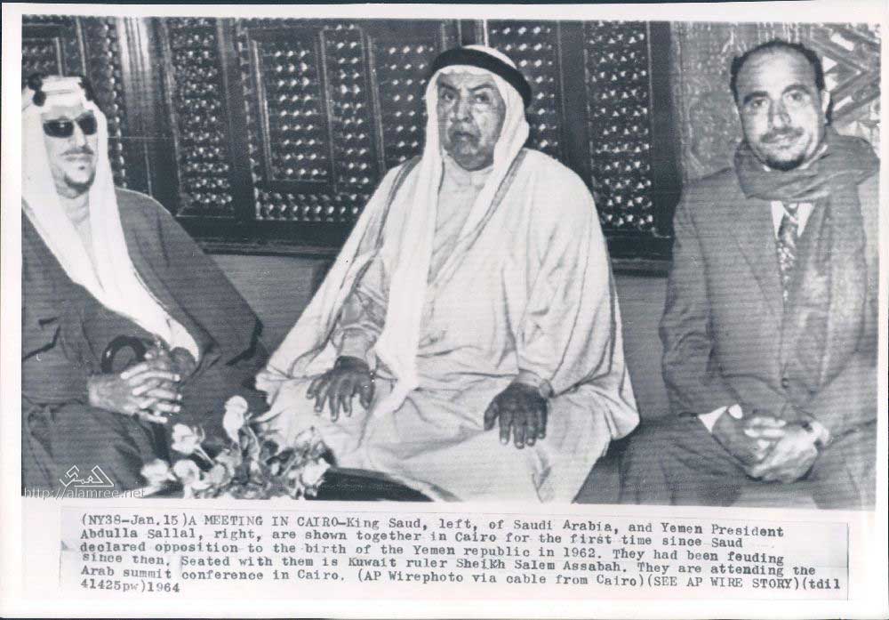 الرئيس عبدالله السلال مع الملك سعود في القاهره 15 يناير 1964