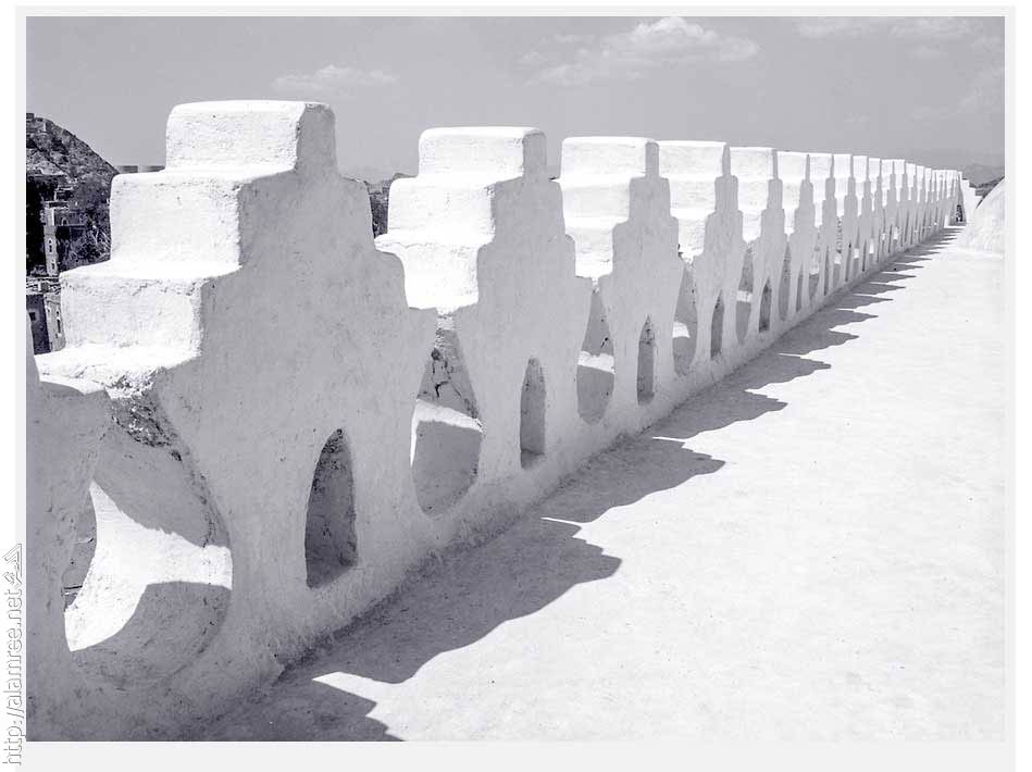 على حافة سقف المسجد الخارجي شرفات تحيط