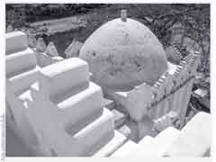 قمتها قبة متوسطة الحجم ناصعة البياض