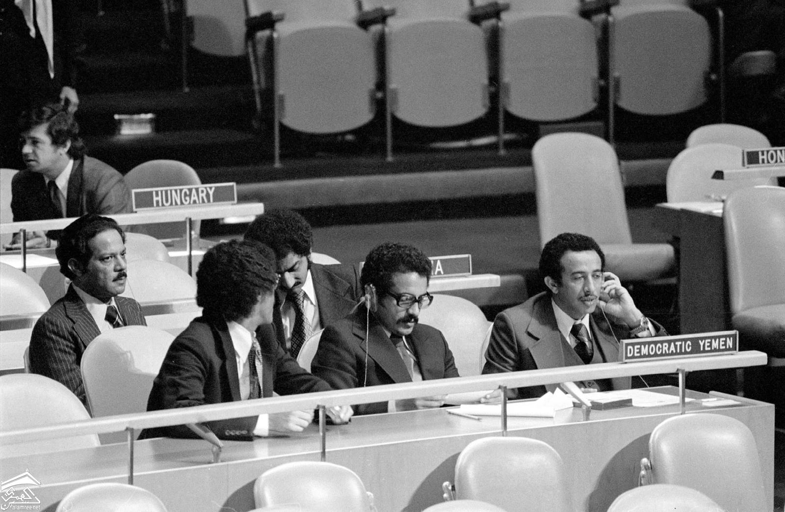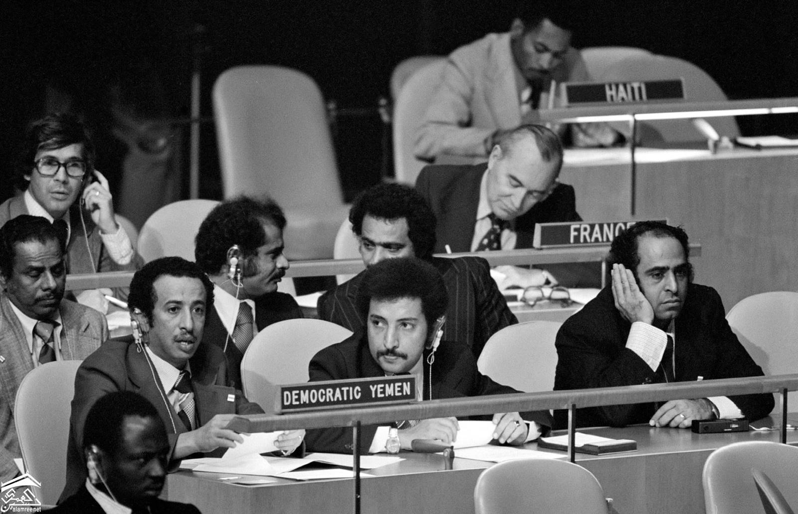 محمد صالح مطيع وزير خارجية اليمن الديمقراطي يخاطب المجلس حول مشاكل المواد الخام والتنمية. 4 اكتوبر