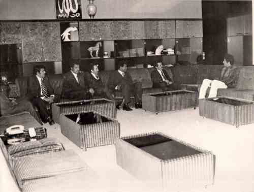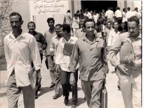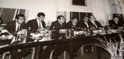 الشيخ زايد في عدن مع الرئيس سالمين وجواره الشهيد مطيع والشيخ مكتوم آل مكتوم وعبدالعزيز عبدالولي