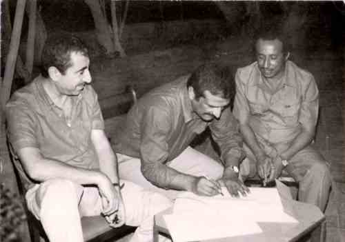 الخامري وسالم ربيع علية ومحمد صالح مطيع في مؤتمر الجزائر عام 1974 |