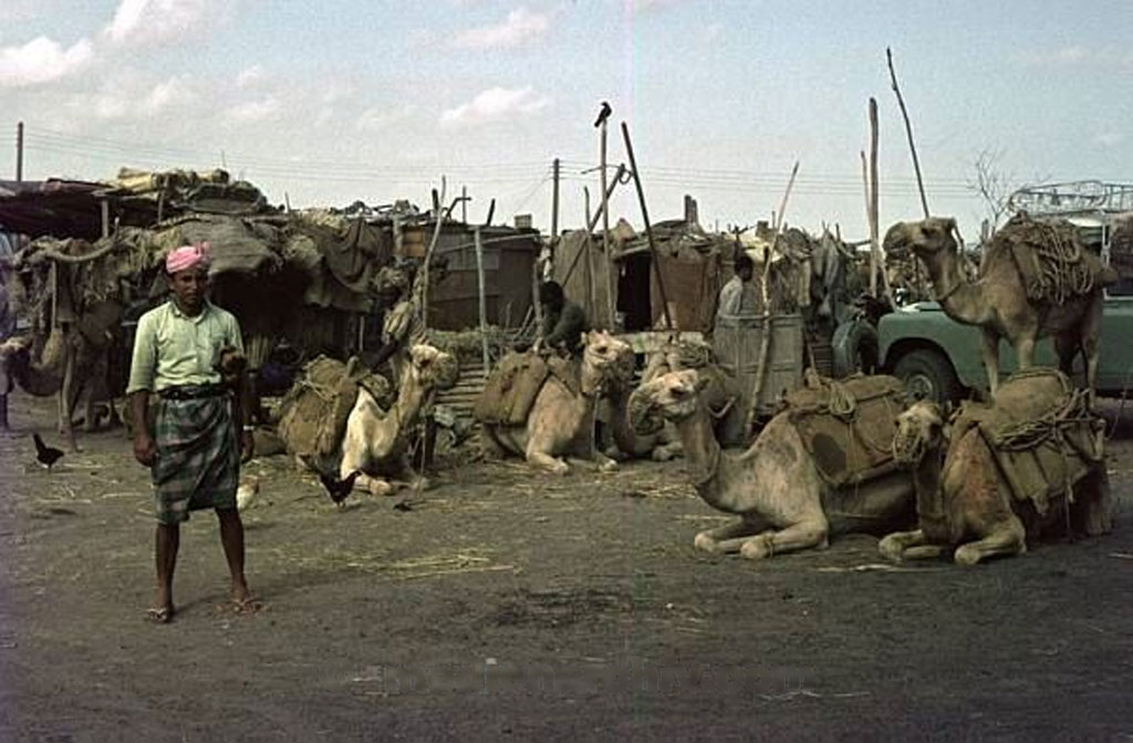 خورمكسر ما بين 1930-1940م وجملان مغادران عدن باتجاه ابين ويلاحظ حصن قفل منتصف الصورة |