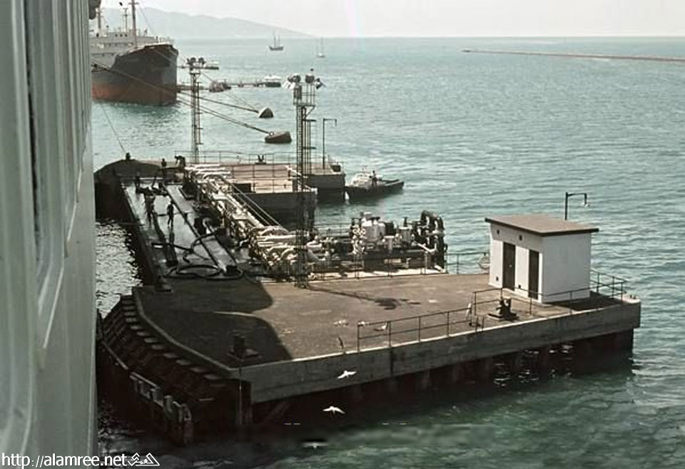 ميناء عدن واحدى السفن راسية بالقرب من منصة تزويد البواخر