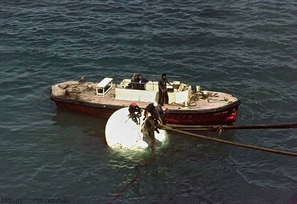 ميناء عدن وعمال الميناء على إحدى العوامات التي