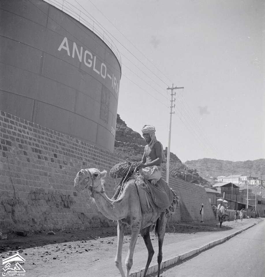 التواهي ورجل على جمل مارا بالقرب من خزانات وقود الشركه
