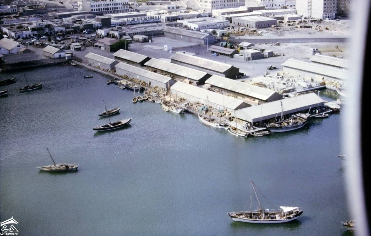 ميناء المعلا ويلاحط مخازن البضائع التي انشئت في ستينيات القرن الماضي |