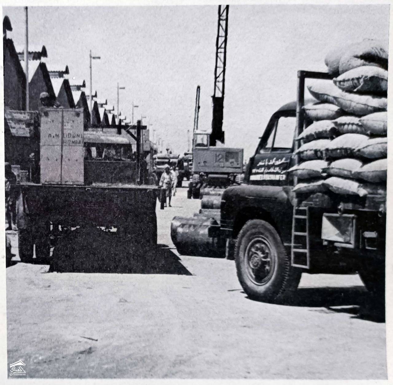 رصيف ميناء المعلا عدن اثناء تفريغ احدى السفن الى سيارات حمول النقل |