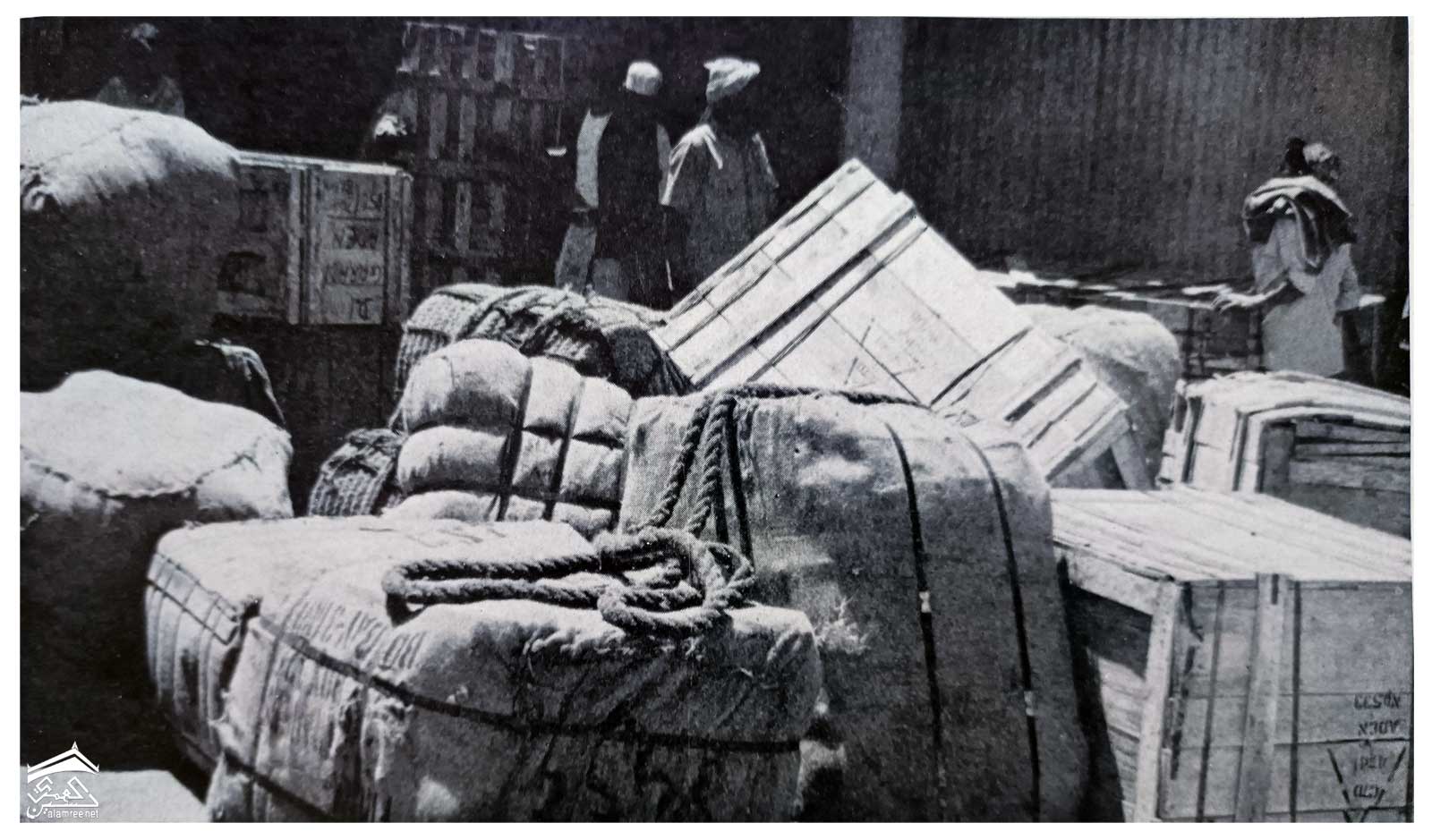رصيف ميناء المعلا عدن اثناء شحن احدى السفن ببالات القطن للتصدير |