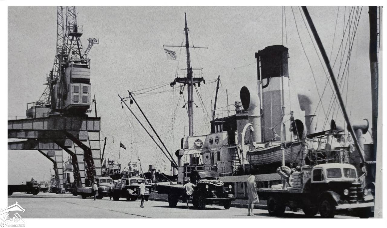 ميناء عدت عام 1958م واحد صنادل الشحن والتفريغ يكاد يكون مملوئا بالبضائع وفي انتظار احد