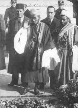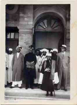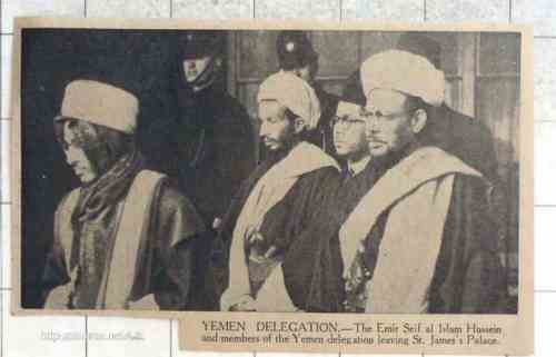 الأمير الحسن بن يحيى في لندن بعد ان ام صلاة عيد الاضحى في قاعة إسيكس ، ستراند  تم ترتيب الاحتفالات من قبل عطية بيغوم ، زوجة اس اف رحيمين ، التي تم نشر روايتها "مذهب الهند " للتو الصور في 11 فبراير 1938م