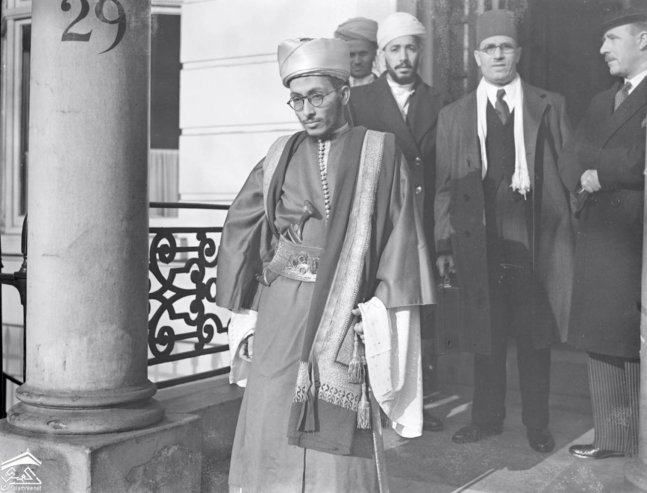 الامير سيف الاسلام الحسين امام قصر الاليزيه في باريس يناير 1938م