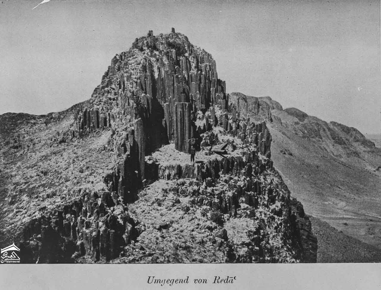 بازلت عمودي بالقرب من رداع الصورة عام 1909 للرحالة هيرمان بورشاردت |