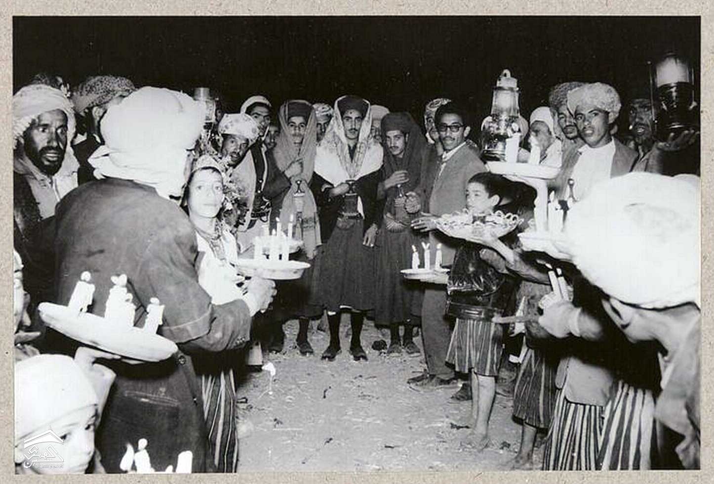 الدراية ، وهي صفيحة مملوءة بالرمل تُزرع عليها سبع شموع مضاءة ، وفي الوسط
